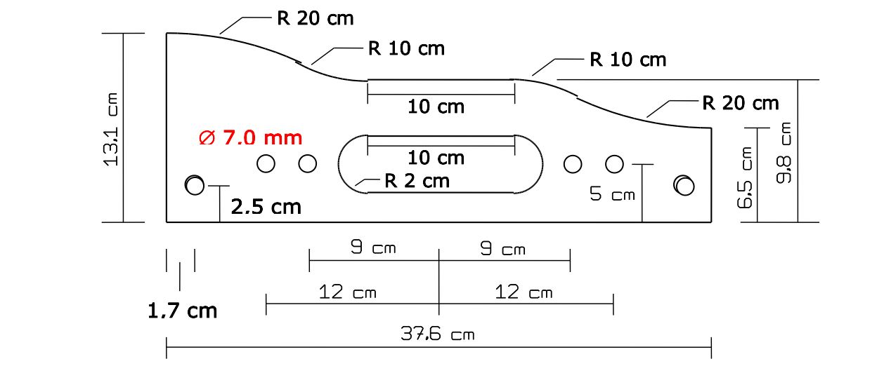 Zur Anfertigung von Modulendstücken steht eine Metallschablone zur Verfügung.