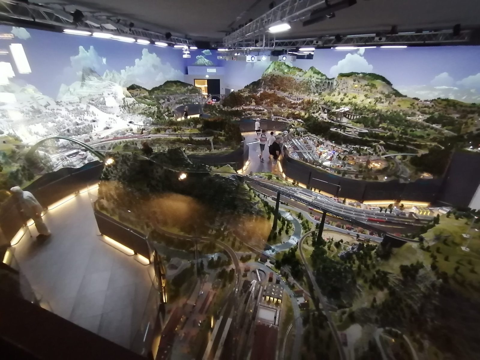 Die H0-Anlage muss man gesehen haben! Super finde ich auch den realistischen Hintergrund der mit über 30 Beamer projiziert wird.