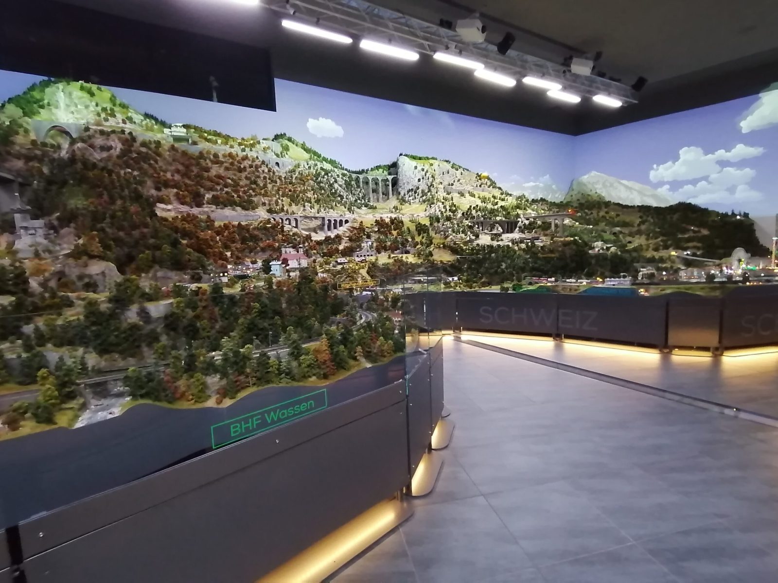 Die H0-Anlage muss man gesehen haben! Super finde ich auch den realistischen Hintergrund der mit über 30 Beamer projiziert wird.