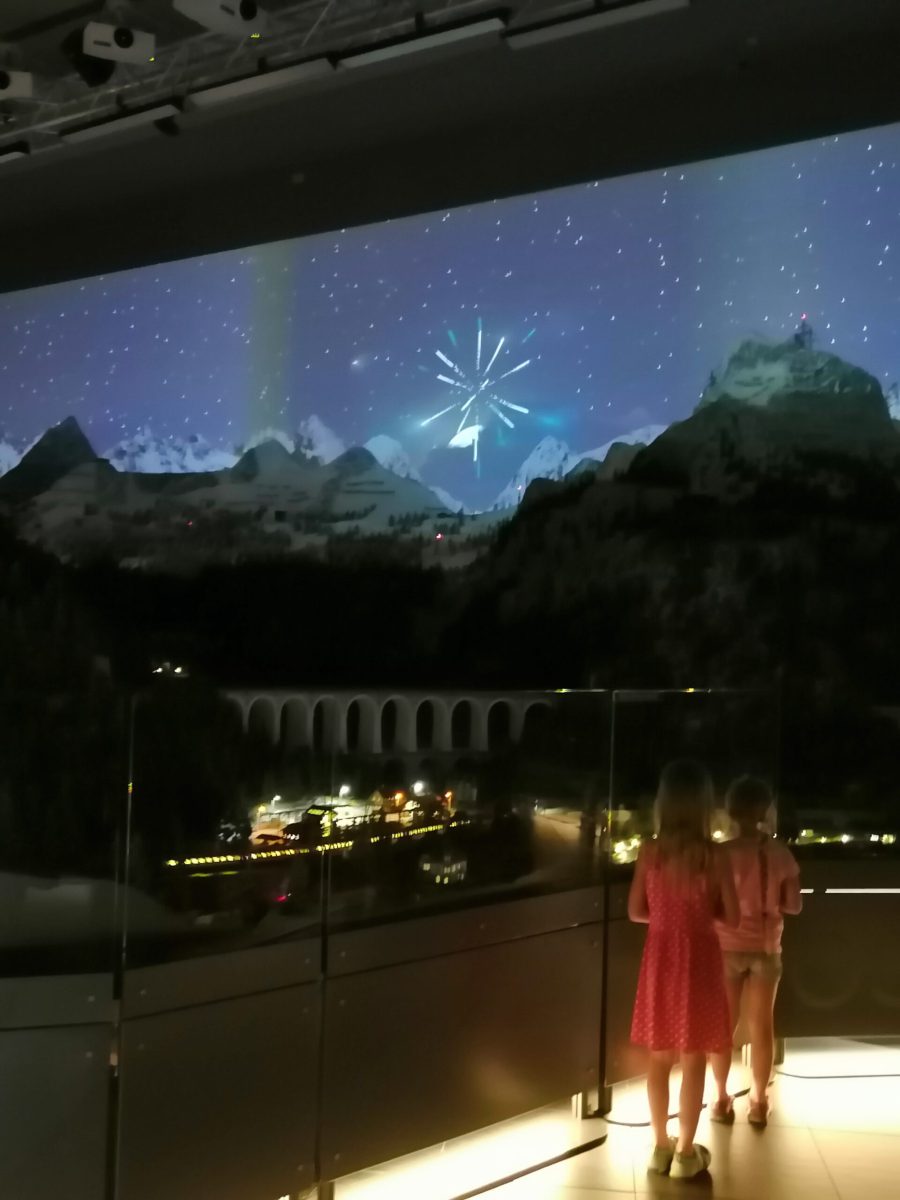 Die H0-Anlage muss man gesehen haben! Super finde ich auch den realistischen Hintergrund der mit über 30 Beamer projiziert wird.