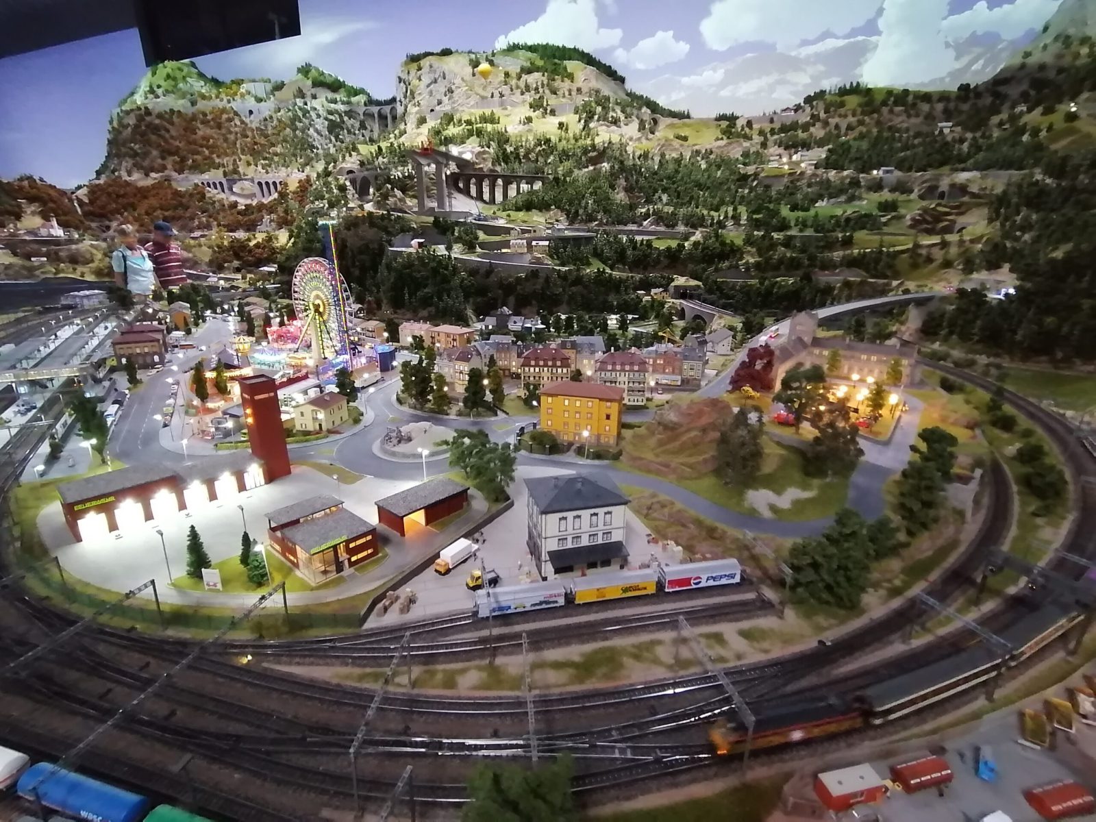Die H0-Anlage muss man gesehen haben! Super finde ich auch den realistischen Hintergrund der mit über 30 Beamer projiziert wird.
