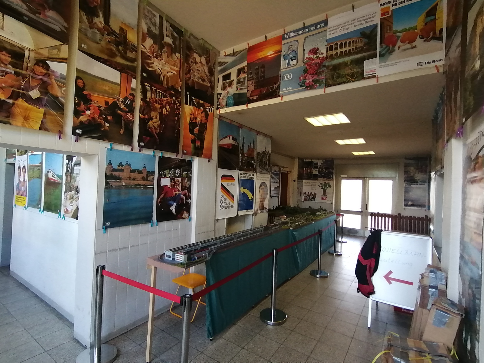 Die eher unansehnlichen Wände des Bahnhofs wurden von Johannes mit vielen Plakaten der DB dekoriert.