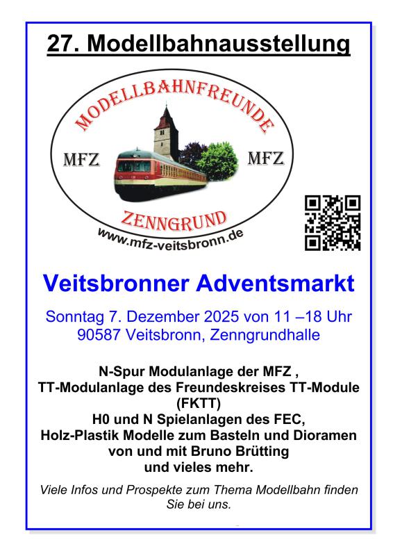 Ausstellung vom 7.12.2025 von 11-18Uhr in der Zenngrundhalle Veitsbronn